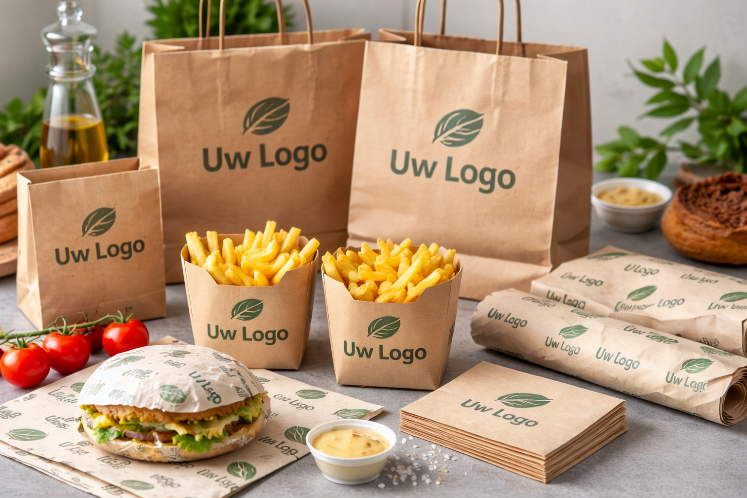 1: Uw logo gaat op alles wat écht gezien wordt. Van frietbakje tot draagtasje tot inwikkelpapier, elke klant neemt uw naam mee.